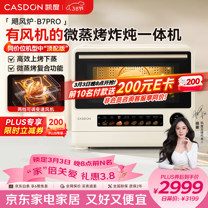 凯度(CASDON)【杨幂推荐】微蒸烤一体机飓风炉B7pro微蒸烤炸炖一体机五合一台式蒸烤箱25L容量微波炉B8