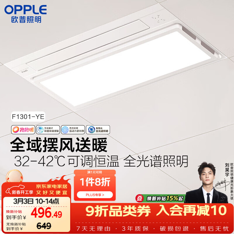 欧普照明(OPPLE)风暖浴霸抱抱暖系列全域摆风送暖浴霸超薄多功能合一F1301-YE