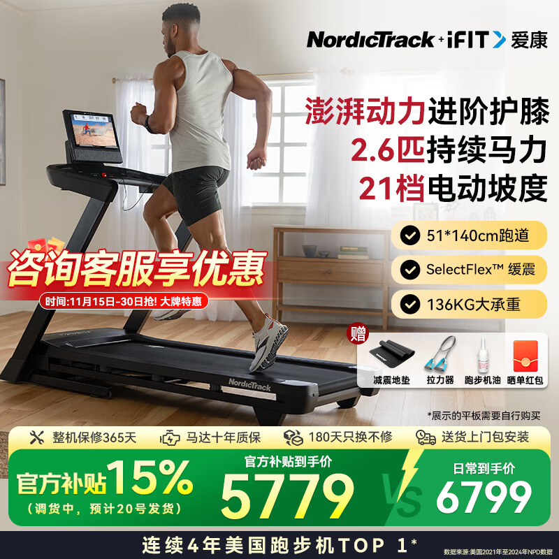 爱康(ICON)美国跑步机T7 家庭用高端可折叠走步机护膝电动爬坡商用健身器材 【2025年新品上市 包安装】
