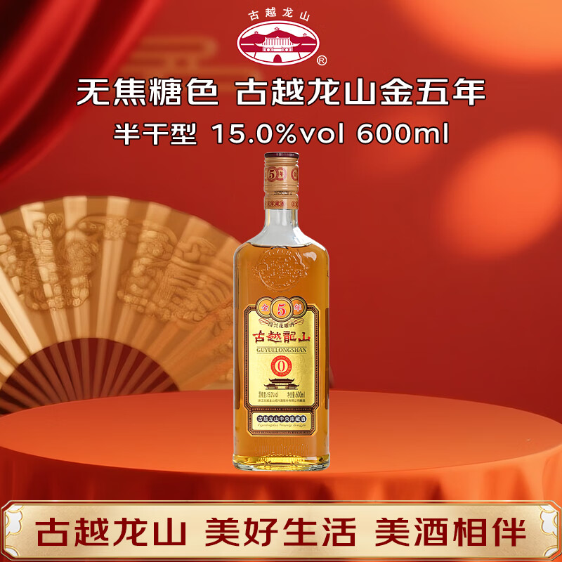 古越龙山 库藏金五年 半干型 绍兴黄酒 600ml 单瓶装 无焦糖色 年货送礼