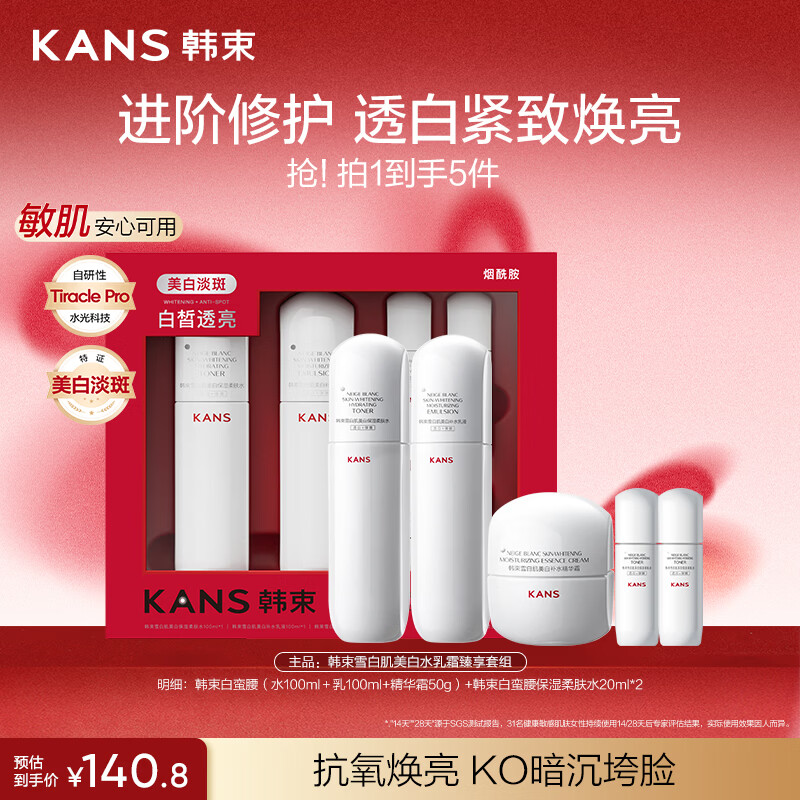 韩束雪白肌美白水乳霜臻享套组 化妆品美白淡斑生日礼物