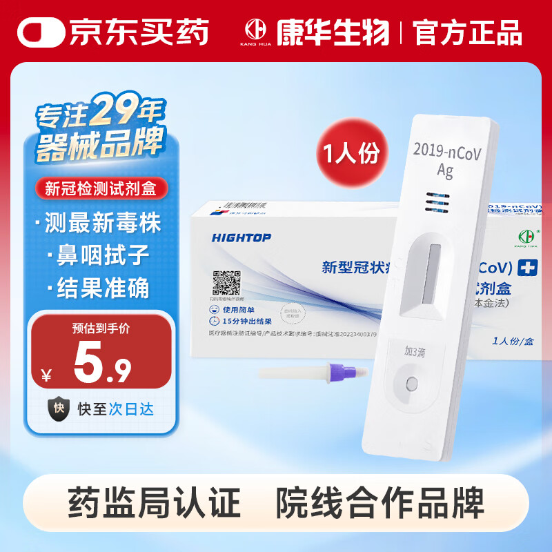 康华生物新冠检测试剂盒非核酸检测新冠抗原病毒家用快速检测试纸1人份