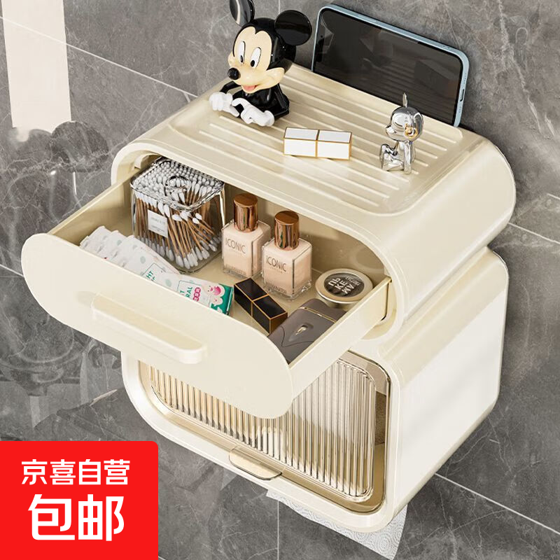 卫生间厕纸盒厕所纸巾盒抽纸盒卫生纸置物架卷纸防水壁挂式免打孔 奶油白 2层 17.5cm 卫生间纸巾盒