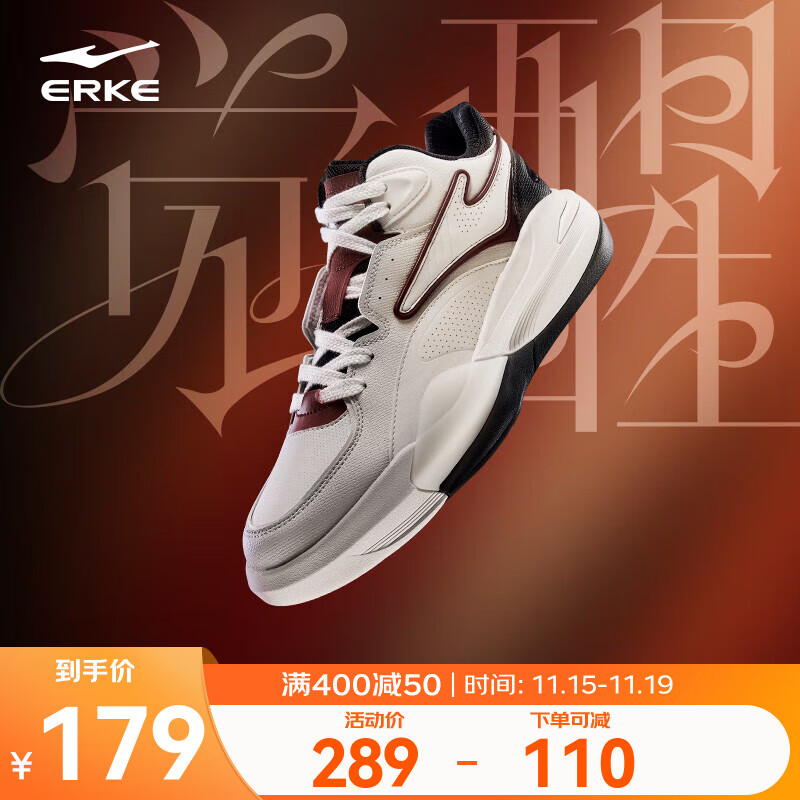鸿星尔克男鞋高帮板鞋秋冬季新款运动鞋男篮球休闲鞋厚底增高滑板鞋制霸3 微晶白/波尔多红 擎天3 44