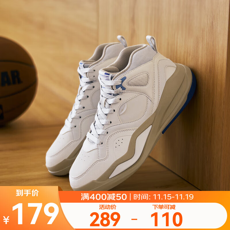 鸿星尔克男鞋高帮板鞋秋冬季新款运动鞋男篮球休闲鞋厚底增高滑板鞋制霸3 微晶白/一度灰 觉醒3 43