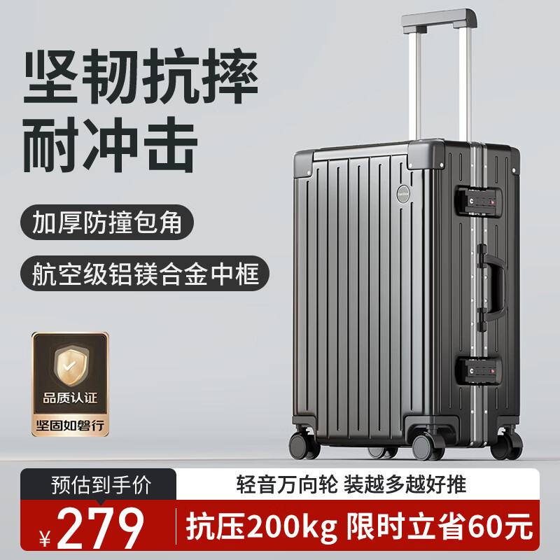 梵地亚铝框行李箱男26英寸拉杆箱大尺寸飞机旅行箱航空密码箱女皮箱子灰