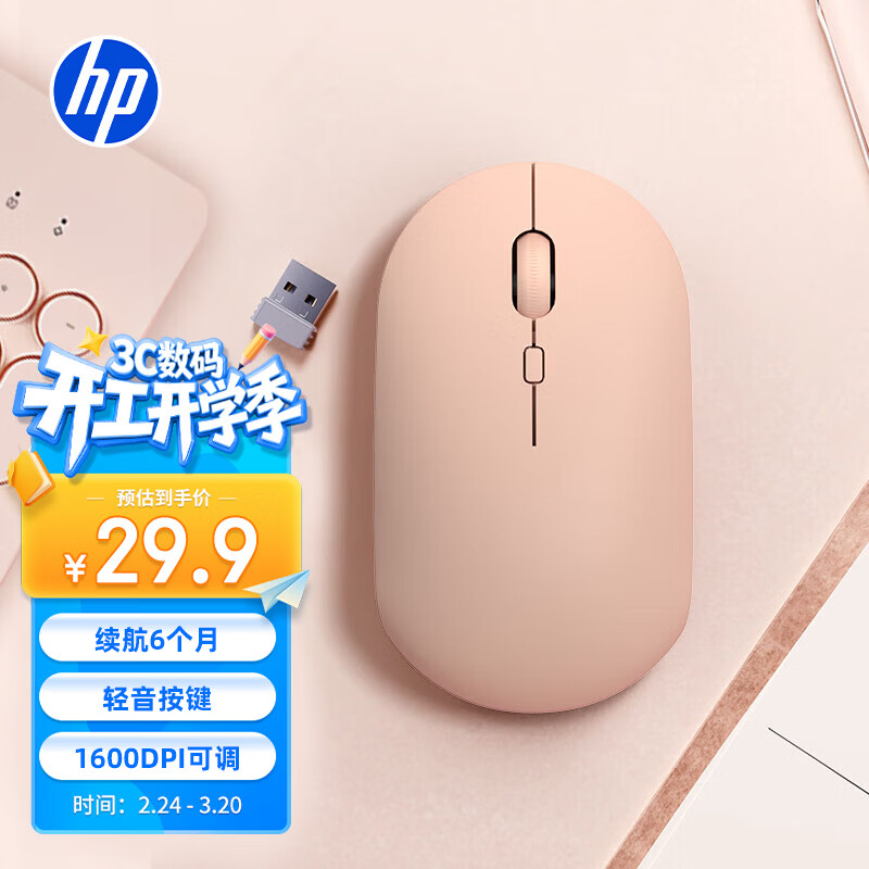 惠普(HP)M241无线鼠标 办公鼠标 家用/商务办公/笔记本/台式机USB接口即插即用 轻音鼠标无线奶茶色