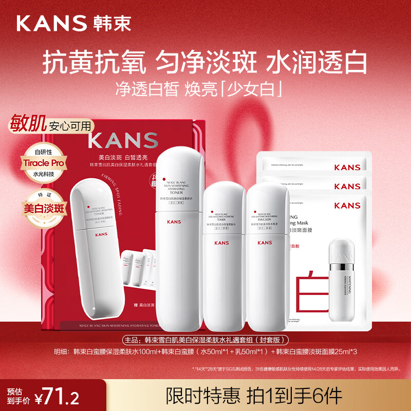 韩束美白保湿柔肤水礼遇套组 化妆品美白淡斑情人节礼物送女生