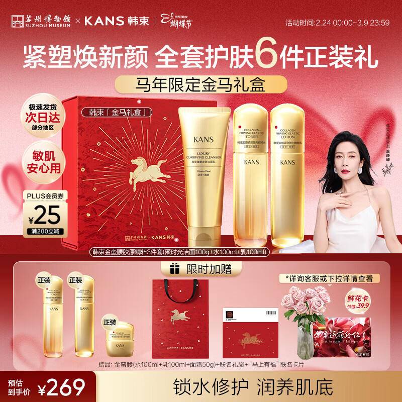 韩束金蛮腰洁面水乳套装补水保湿滋润紧致抗皱淡纹三八节女神礼物