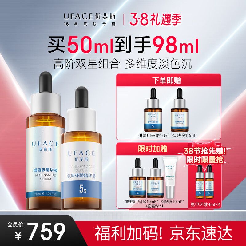 优斐斯5%氨甲环酸+4%烟酰胺精华液高阶双星定制礼盒装女神节礼物