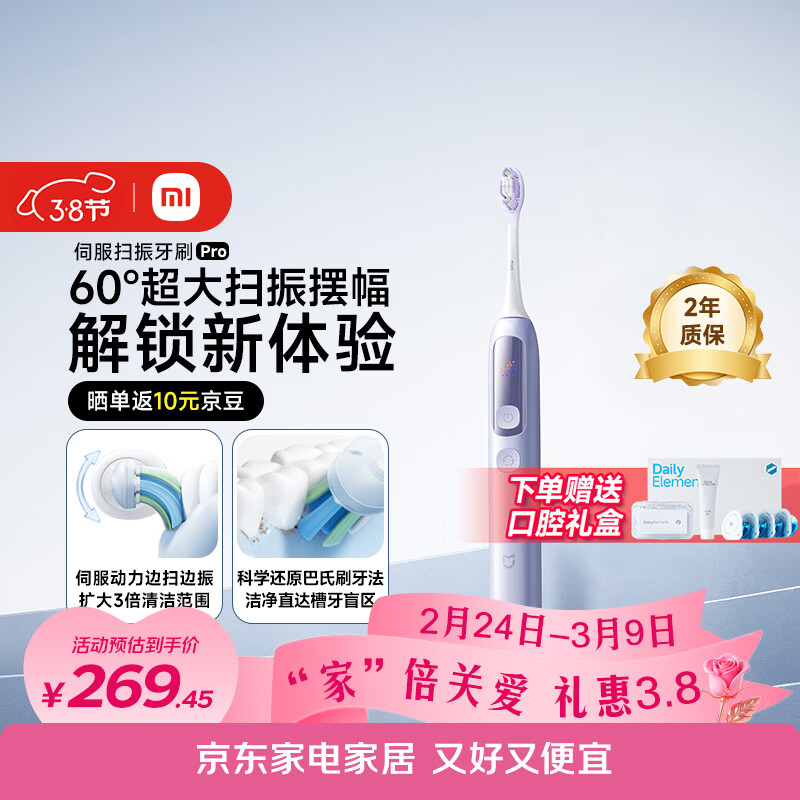 米家小米伺服扫振电动牙刷Pro大摆幅扫振智能洁齿更全面生日礼物送男友女友礼物