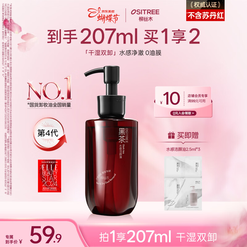 柳丝木(Ositree)黑茶水感卸妆油温和眼唇卸三合一干湿双卸三八节礼物 200ml