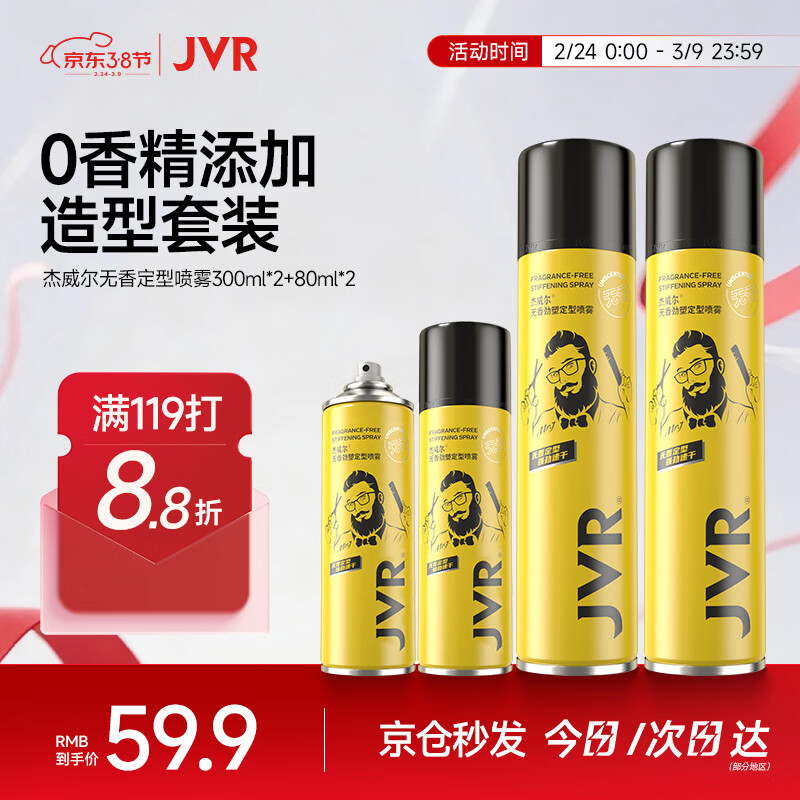 杰威尔无香坚挺定型套装 男士造型发胶定型喷雾300ml*2+80ml*2