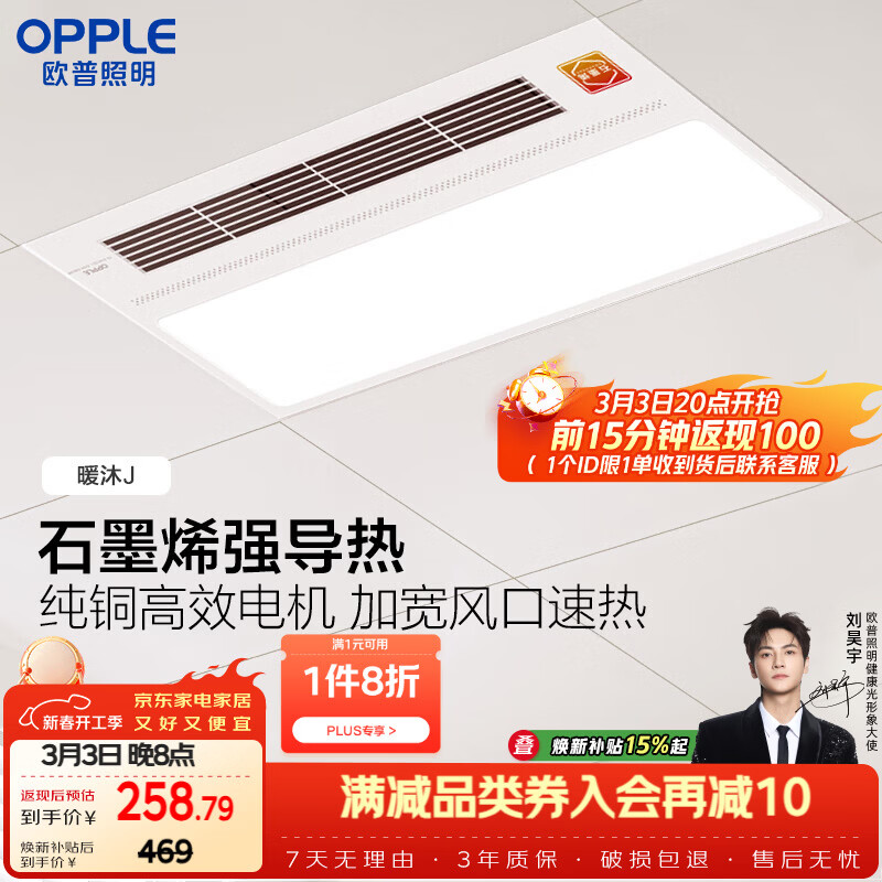 欧普照明(OPPLE)风暖浴霸基础暖系列广域摆风速热浴霸超薄多功能合一 暖沐J