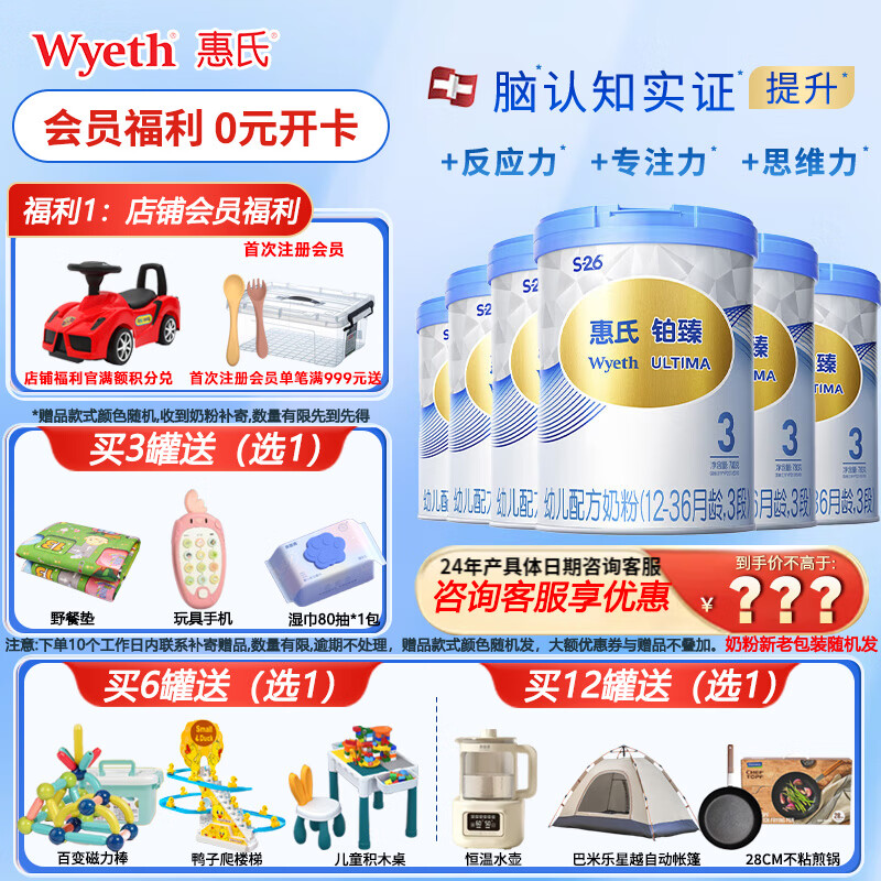 惠氏【官方授权】【官方店】惠氏铂臻奶粉瑞士原装进口780G奶粉 3段780克*6罐