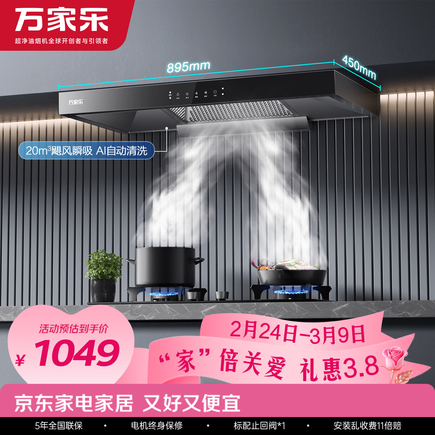 万家乐抽油烟机【小飓风AT051】挥手感应自动清洗 欧式20立方爆炒大吸力顶吸油烟机家用免拆洗吸排油烟机