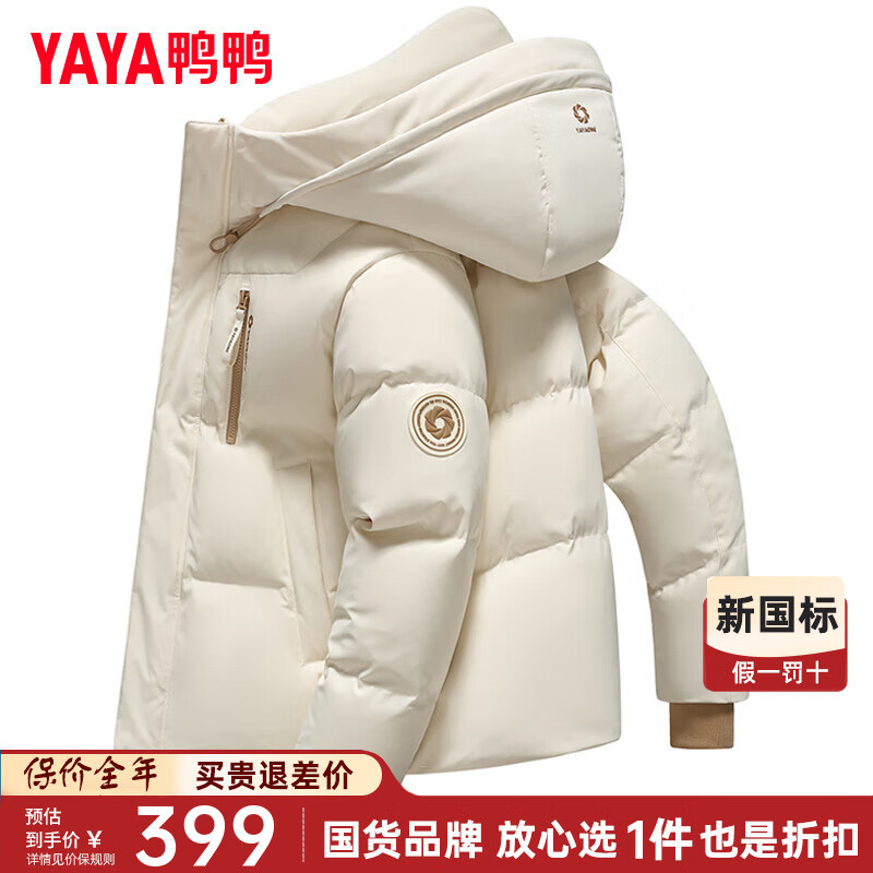 鸭鸭(YAYA)【明星同款】羽绒服男女情侣短款2025冬季新款时尚休闲加厚外套潮 25036 燕麦色-YE5B006142D 【王一博同款】 3XL 男女同款【195-215斤】