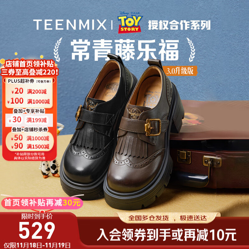 天美意吴昕/李兰迪同款女鞋子疯狂动物城联名厚底乐福鞋小皮鞋 7cm玩具总动员款-黑色 40