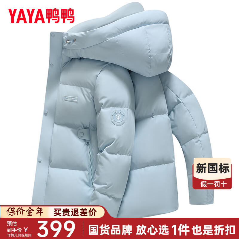 鸭鸭(YAYA)【明星同款】羽绒服男女情侣短款2025冬季新款时尚休闲加厚外套潮 25011 冰川蓝色-YE5B002982D 3XL 男女同款【195-215斤】