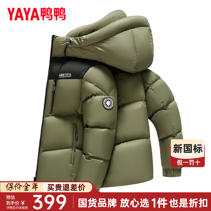 鸭鸭(YAYA)【明星同款】羽绒服男女情侣短款2025冬季新款时尚休闲加厚外套潮 25041 山野绿色-YE5B007442D XL 男女同款【155-175斤】
