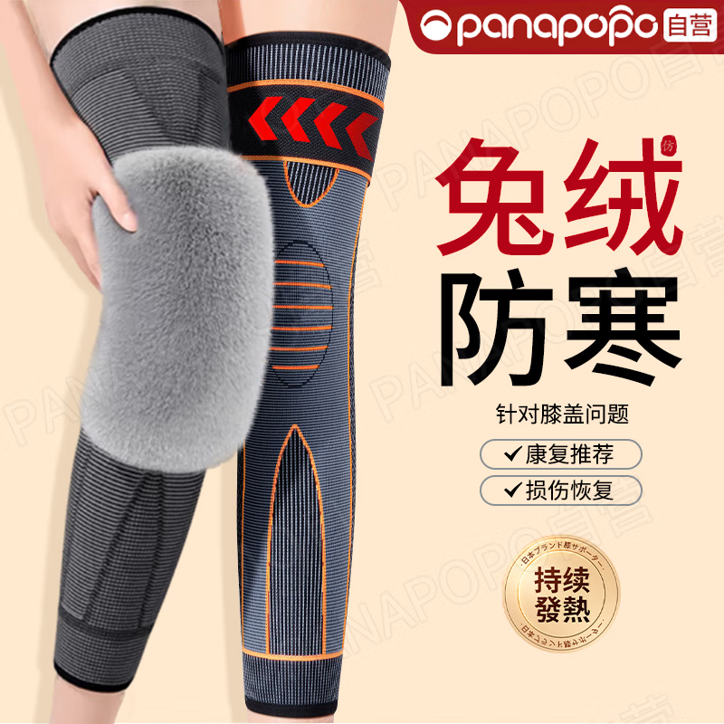 Panapopo兔毛护膝保暖关节炎老寒腿男女士中老年人秋冬防寒护腿长筒套XL