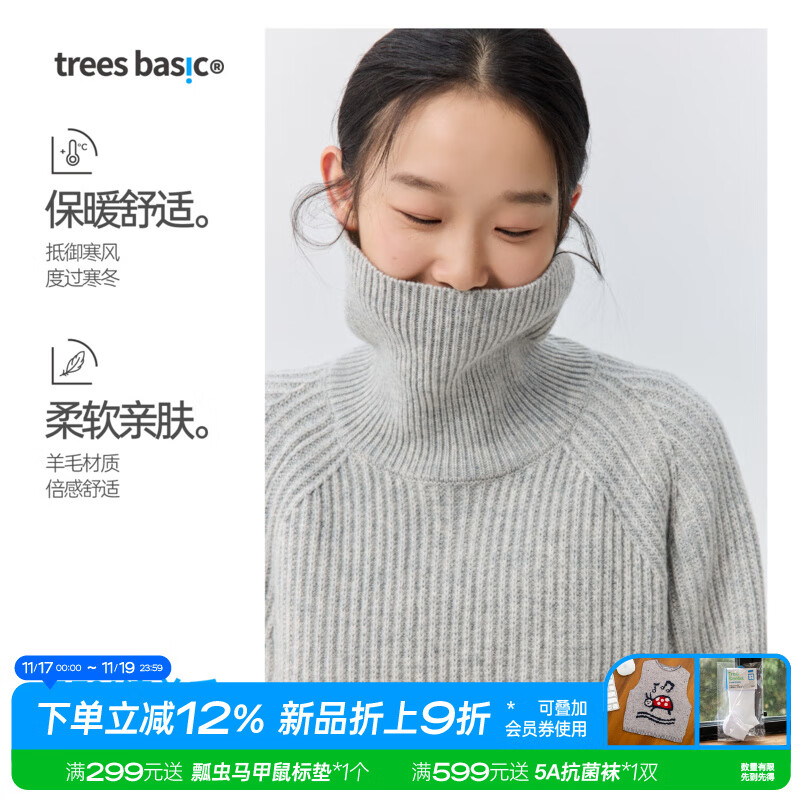 warmtreesTreesBasic基础羊毛插肩高领毛衣男女款秋冬季宽松针织套头衫 白岩灰 L