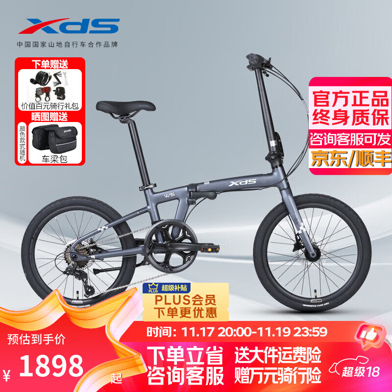 喜德盛折叠车W5超轻铝架禧玛诺6速油压碟刹20寸通勤上班代步折叠自行车 深空灰