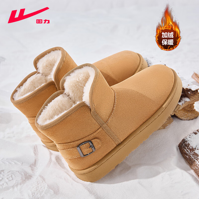 回力官方雪地靴男棉鞋冬季保暖高帮加绒加厚鞋子男 1052卡其色 43