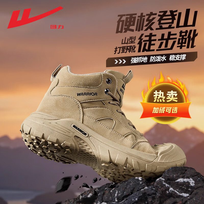 回力官方男鞋冬季加绒登山鞋保暖高帮马丁靴户外运动棉鞋 2680 卡其39