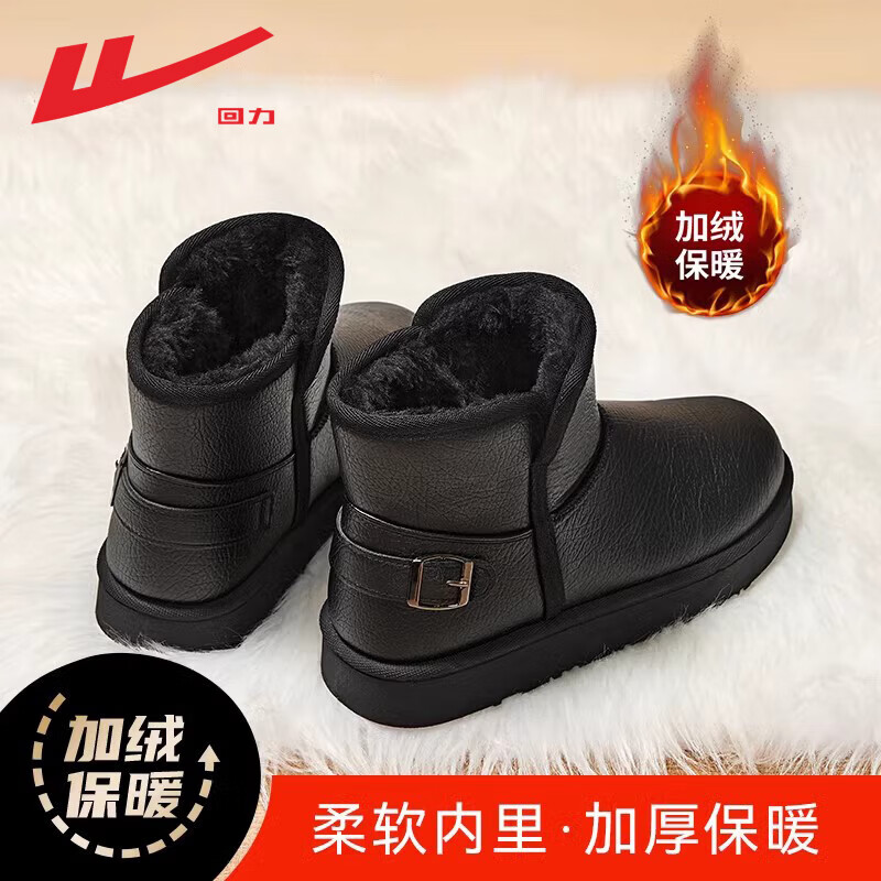 回力雪地靴男冬季保暖男鞋加绒加厚黑色棉鞋子男 W-2024 黑色 41