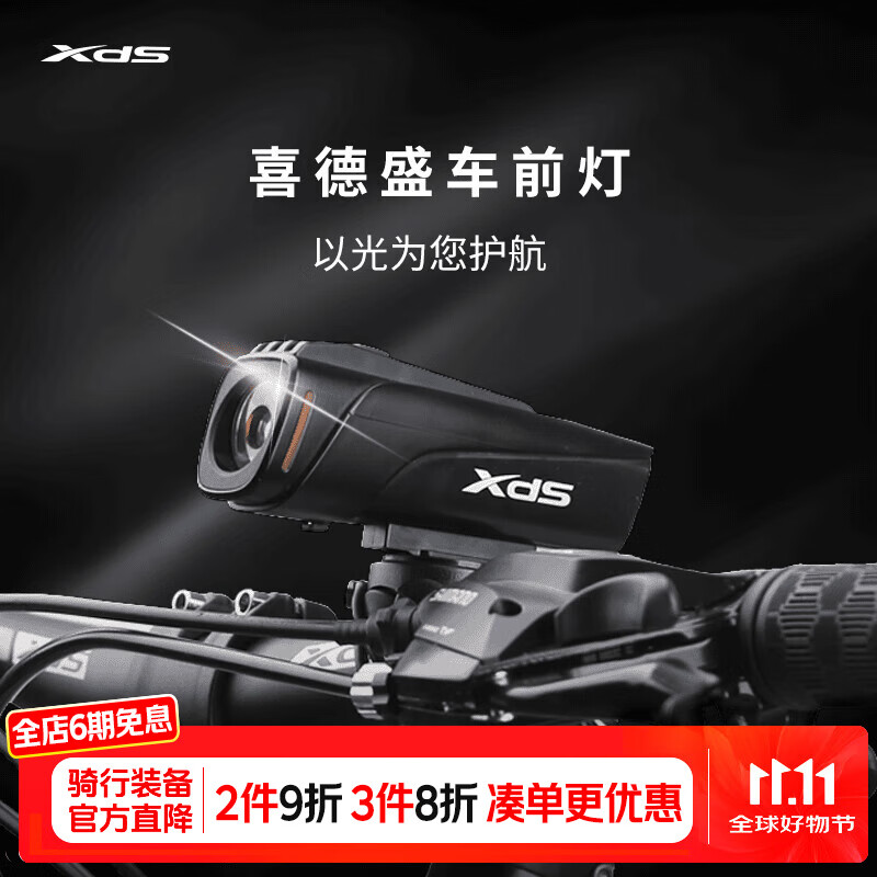 喜德盛车前灯1000流明防水防炫目多档调节自行车灯骑行装备配件 黑色-1000LM