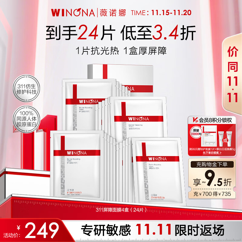 薇诺娜311屏障面膜乳霜面膜6片*4盒装滋润舒缓补水直播专属