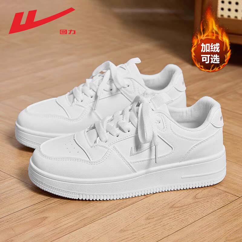 回力官方男鞋冬季保暖板鞋加绒情侣休闲鞋子运动男女棉鞋 4898白色 42