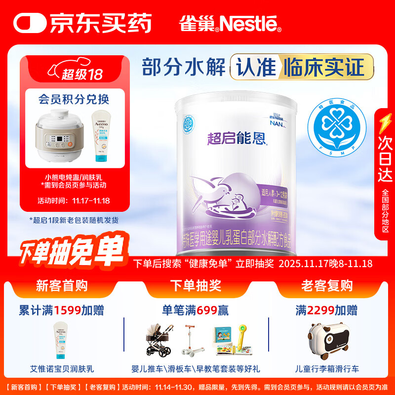 雀巢(Nestle)超启能恩1段 婴儿乳蛋白部分水解配方奶粉 800g