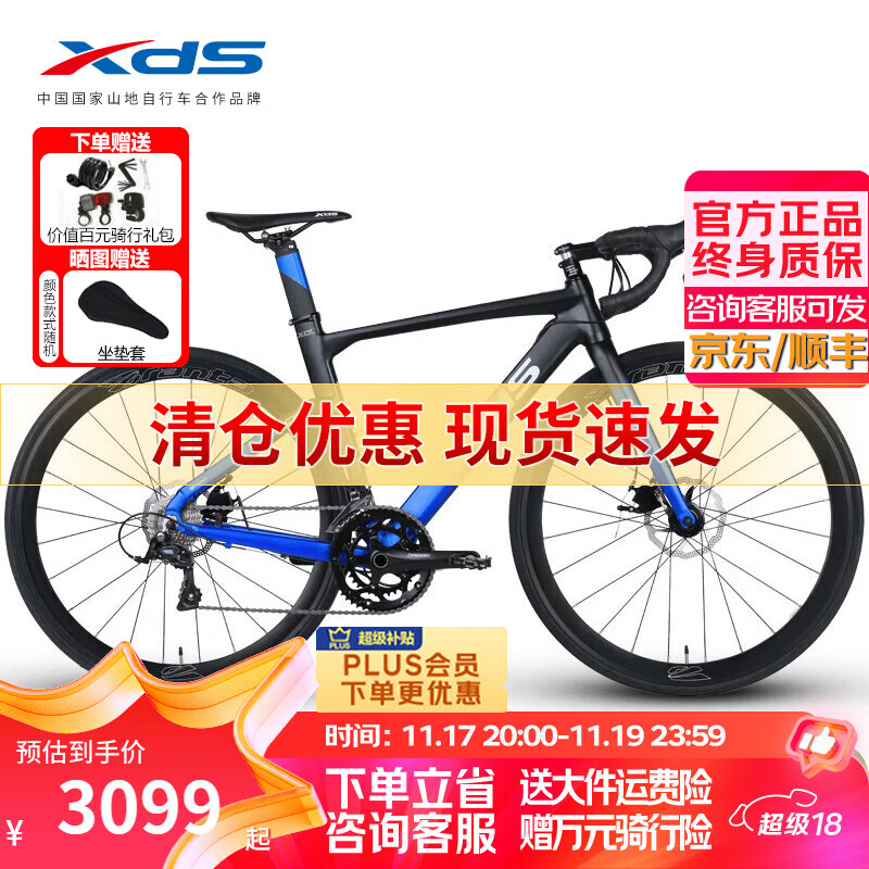 喜德盛(xds)公路自行车RC600铝架禧玛诺18速进阶破风男女公路车 黑/蓝(460mm)碟刹版