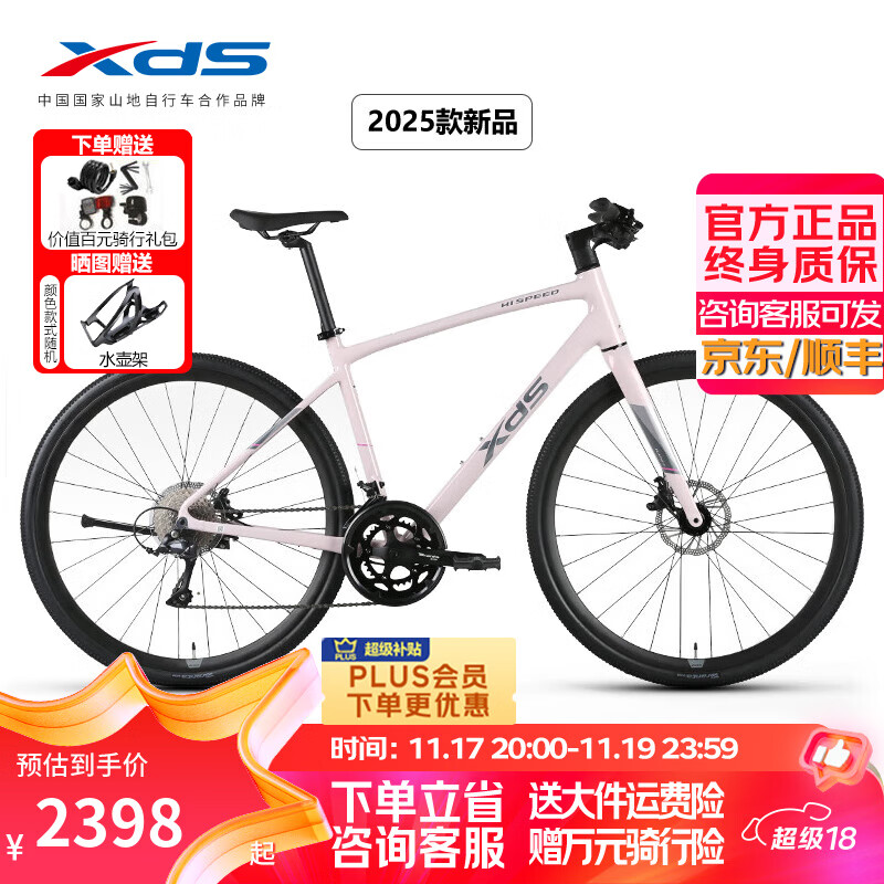 喜德盛(xds)平把公路自行车极速380铝架油压碟刹24速城市运动单车成人轻便 海贝粉450