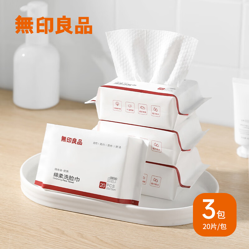 无印良品一次性洗脸巾60抽出行差旅携装洁面巾珍珠纹擦脸毛巾巾3包试用装