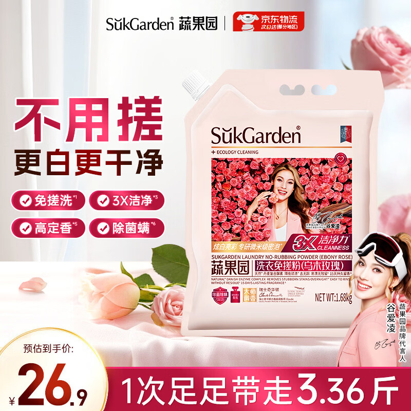 蔬果园洗衣粉乌木玫瑰免搓洗衣粉3.36斤大袋装去渍非皂粉持久留香深层