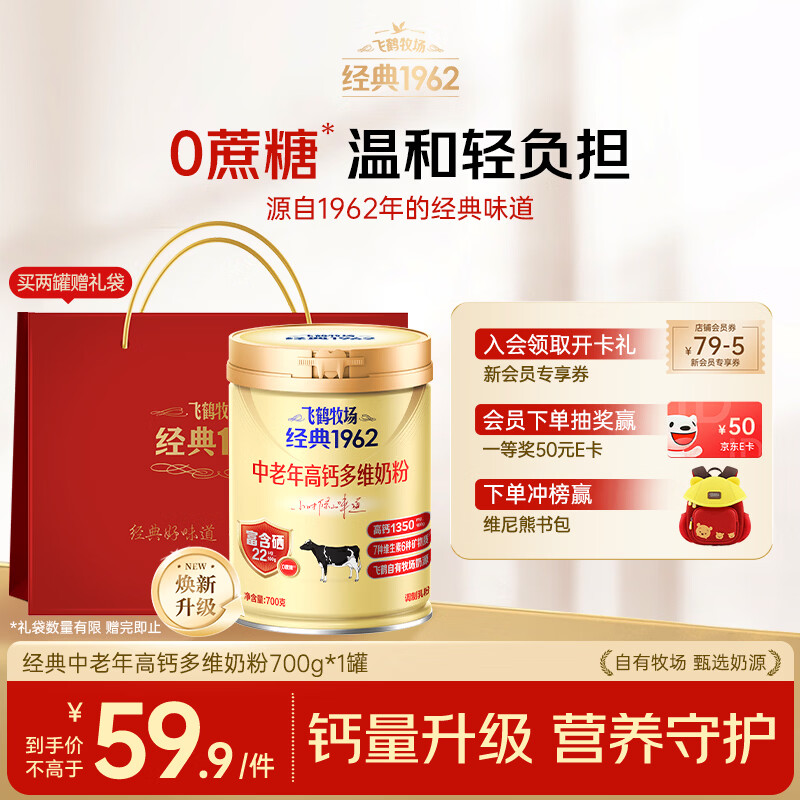 飞鹤牧场经典1962中老年高钙多维奶粉700g富含硒高蛋白维生素