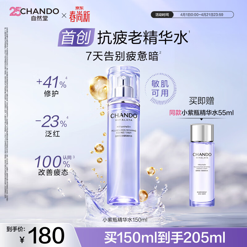自然堂【周翊然同款】肌源修护小紫瓶精华水150ml抗疲老生日礼物