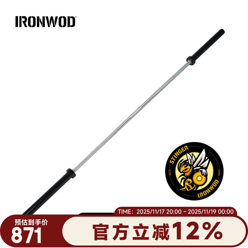 IRONWOD杠铃杆男士家用三项杆奥杆女士健身力量举杆卧推深蹲硬拉竞赛杆 20kg 2.2米 力量举家用杆【中间有滚花】