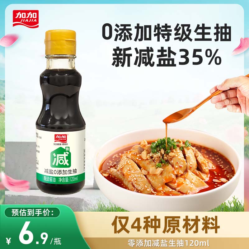 加加 减盐系列 减盐生抽120ml【特级 减盐35%】0添加白砂糖 味鲜 酱油