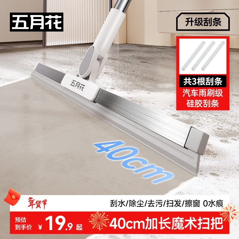 五月花魔术扫把刮水地板刮浴室卫生间扫水神器40CM共3个硅胶刮条