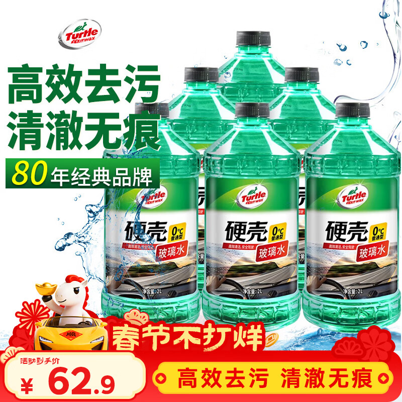 龟牌(Turtle Wax)硬壳玻璃水0度汽车去油膜强力去污除虫胶鸟粪雨刮水通用2L*6瓶