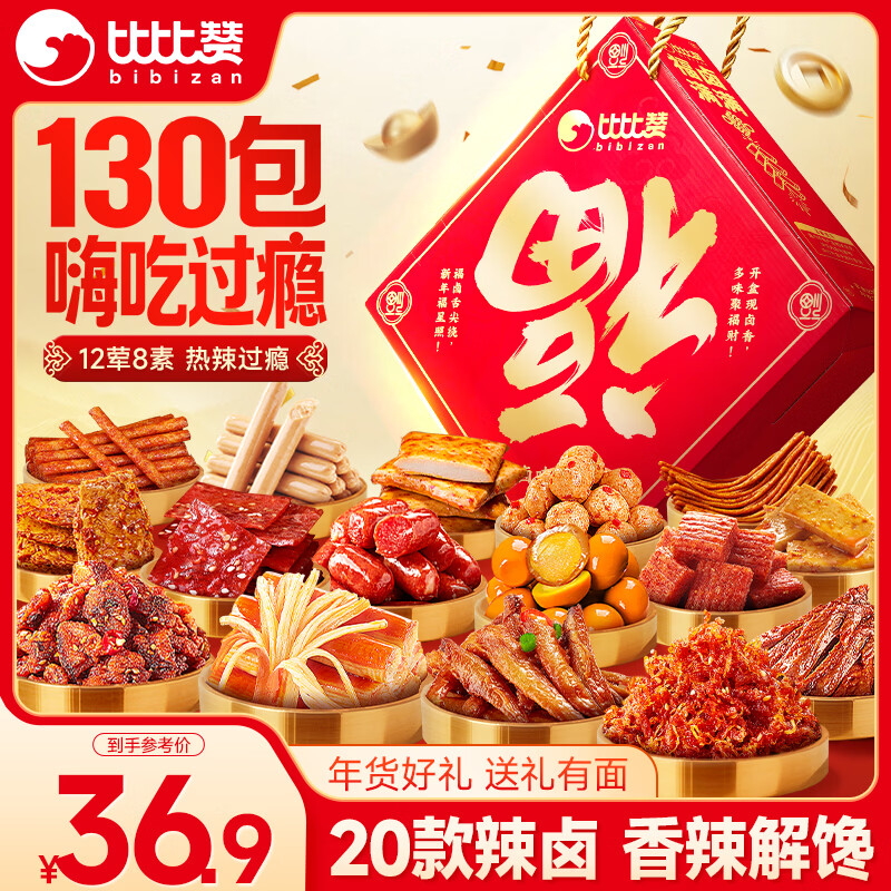 比比赞(BIBIZAN)辣卤礼盒130包辣条魔芋豆干卤味解馋休闲零食大礼包年货送礼团购