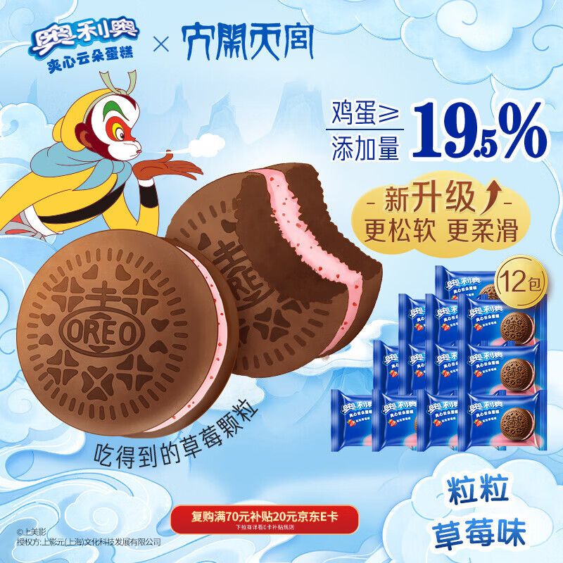 奥利奥(Oreo)夹心云朵蛋糕 粒粒草莓味12枚264g 糕点休闲零食 早餐下午茶