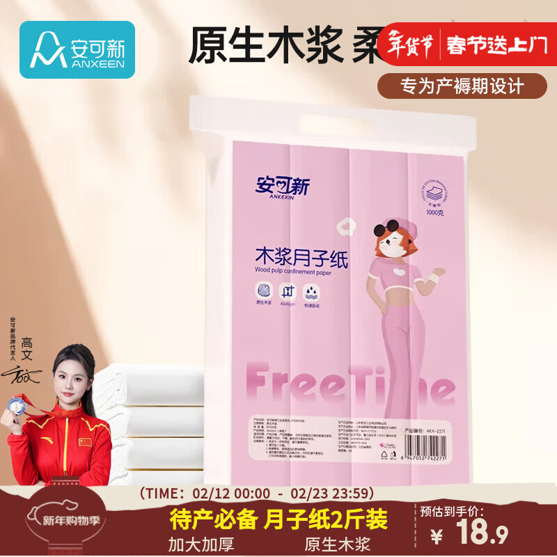 安可新 月子纸孕产妇刀纸大号40*50原生木浆卫生纸产褥期姨妈生理1000g