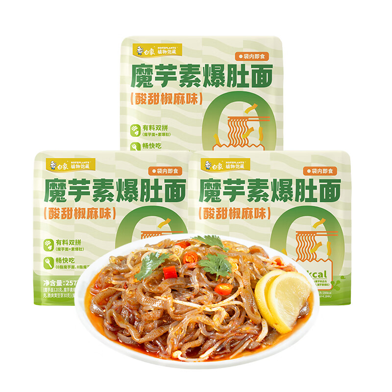 白象 方便面 魔芋爆肚即食代餐饱腹健身 0脂低卡 257g*3袋 酸甜椒麻味