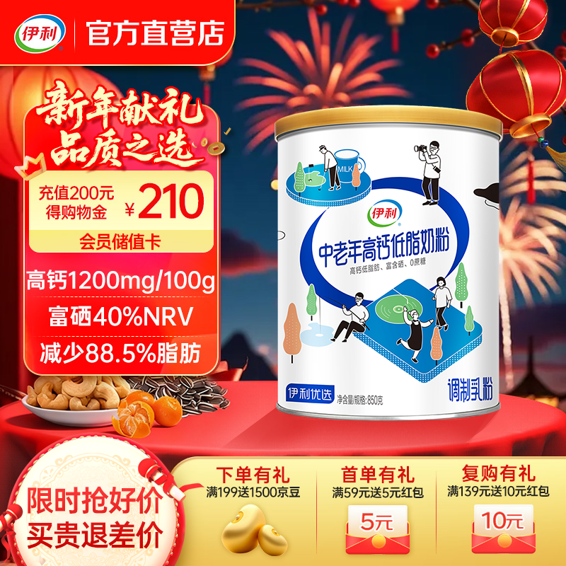 伊利高钙低脂富硒奶粉850g 富含膳食纤维 0蔗糖添加 年货节礼盒 送礼 【送礼盒】850g*2
