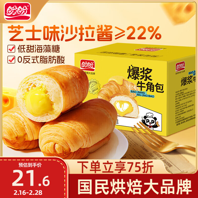 盼盼爆浆牛角包 休闲零食早餐点心代餐手撕面包小吃 芝士味 1000g/箱